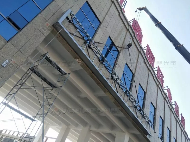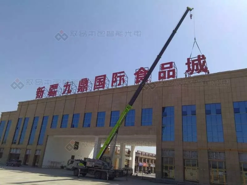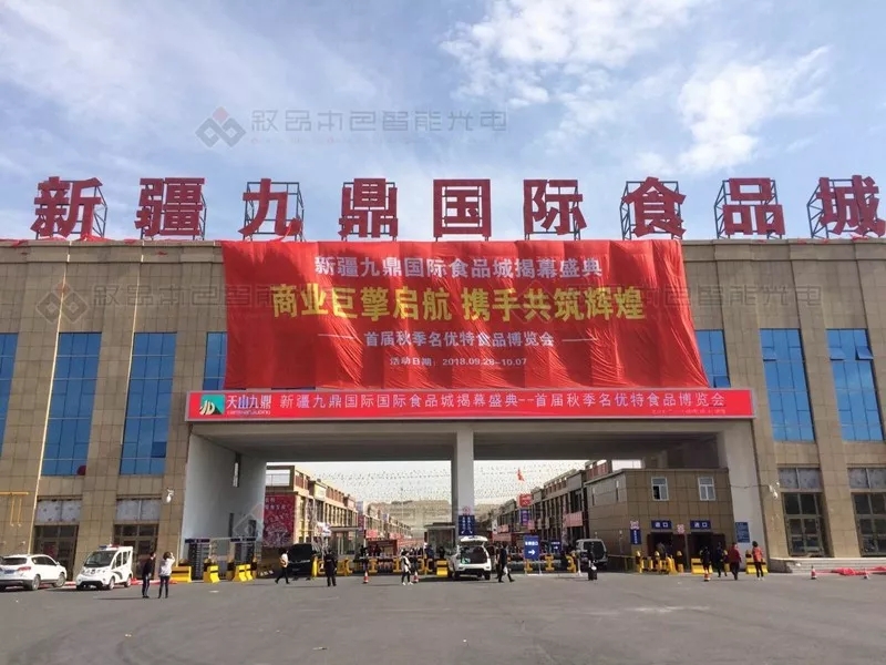 此項(xiàng)目由新疆?dāng)⑵繁旧悄芄怆姽こ逃邢薰境薪邮┕ぐ惭b。新疆九鼎國際食品城大型廣告、亮化、顯示屏工程,盡管工作量大,任務(wù)重,時間緊,但公司上下緊密協(xié)作,克服重重困難終于在28號開業(yè)前順利完工。