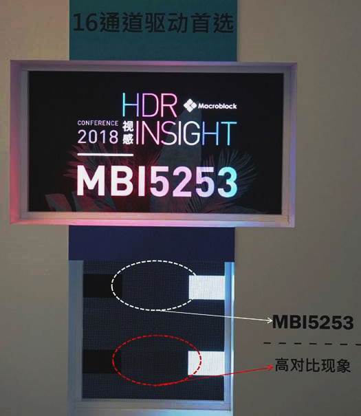 ♦ 圖7:上:MBI5253 P1.667箱體;下: 改善高對(duì)比度干擾問題