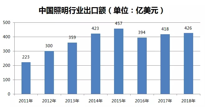 照明出口在2016年出現(xiàn)較大幅度下降外,2017年、2018年連續(xù)保持微幅增長(zhǎng)態(tài)勢(shì),但還沒(méi)有突破2015年的出口最高值。