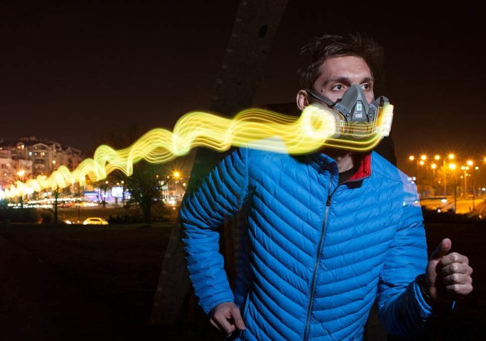 這款LED發(fā)光口罩上裝設(shè)了感應(yīng)器,與AirBeam空氣監(jiān)控系統(tǒng)運作,并透過藍牙連接到AirCasting網(wǎng)站,能根據(jù)空污實時改變顏色。
