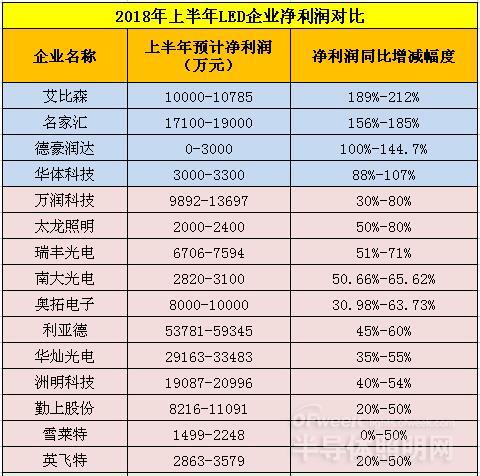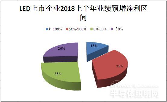 從已經(jīng)披露2018年半年度業(yè)績預(yù)告的31家LED上市公司中,有24家LED上市公司凈利預(yù)增。其中,凈利預(yù)增超100%的企業(yè)有4家,占比12.9%;凈利預(yù)增在50%-100%的企業(yè)有11家,占比為35.48%;凈利預(yù)增在0%-50%及凈利預(yù)下滑的企業(yè)各為8家,占比均為25.8%。