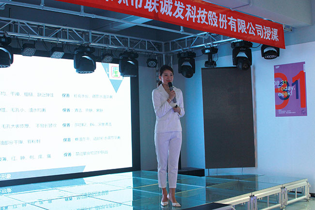 在護(hù)膚方面,霍美玲老師也是頗有心得,PPT演示了不同的膚質(zhì)護(hù)膚的步驟及保養(yǎng)的方式,同時(shí)還對(duì)參與培訓(xùn)的人員所提出的護(hù)膚問(wèn)題進(jìn)行了詳細(xì)的講解。