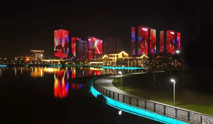 嘉興平湖總部商務區(qū)建筑燈光秀,采用國際領先的互聯(lián)網(wǎng)+GPS衛(wèi)星控制系統(tǒng),多棟樓宇之間實現(xiàn)燈光“統(tǒng)一聯(lián)動、變幻無窮”,組成了一幕幕靈動而又壯美的畫面,花鳥蟲魚、文化平湖等主題影像輪番播放,將城市的夜空裝扮得絢麗多彩。
