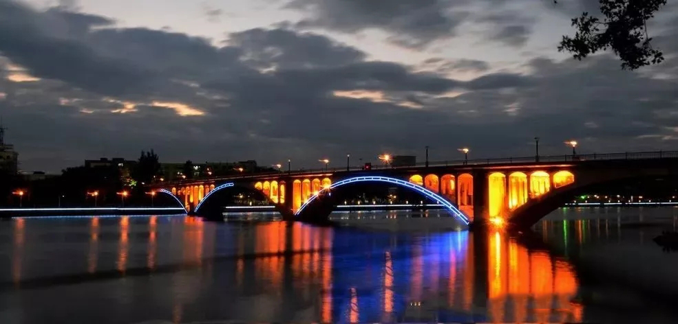 橋身也可采用 LED 光源勾勒出整座橋的鮮明輪廓,同時(shí)又為橋上的欄桿提供了輔助照明,由一整排的單色或七彩 LED 光源進(jìn)行照明,營造出追光效果,通過控制系統(tǒng)控制其變色的快慢速度、光色、亮度等,表現(xiàn)出橋體優(yōu)美的曲線,與水面的倒影形成浮光掠影、晶瑩剔透的夜間景觀。