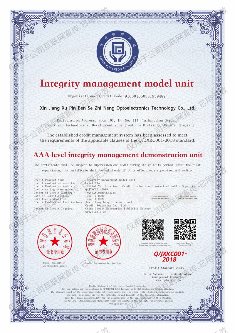 AAA級誠信經(jīng)營示范單位證書_英文版