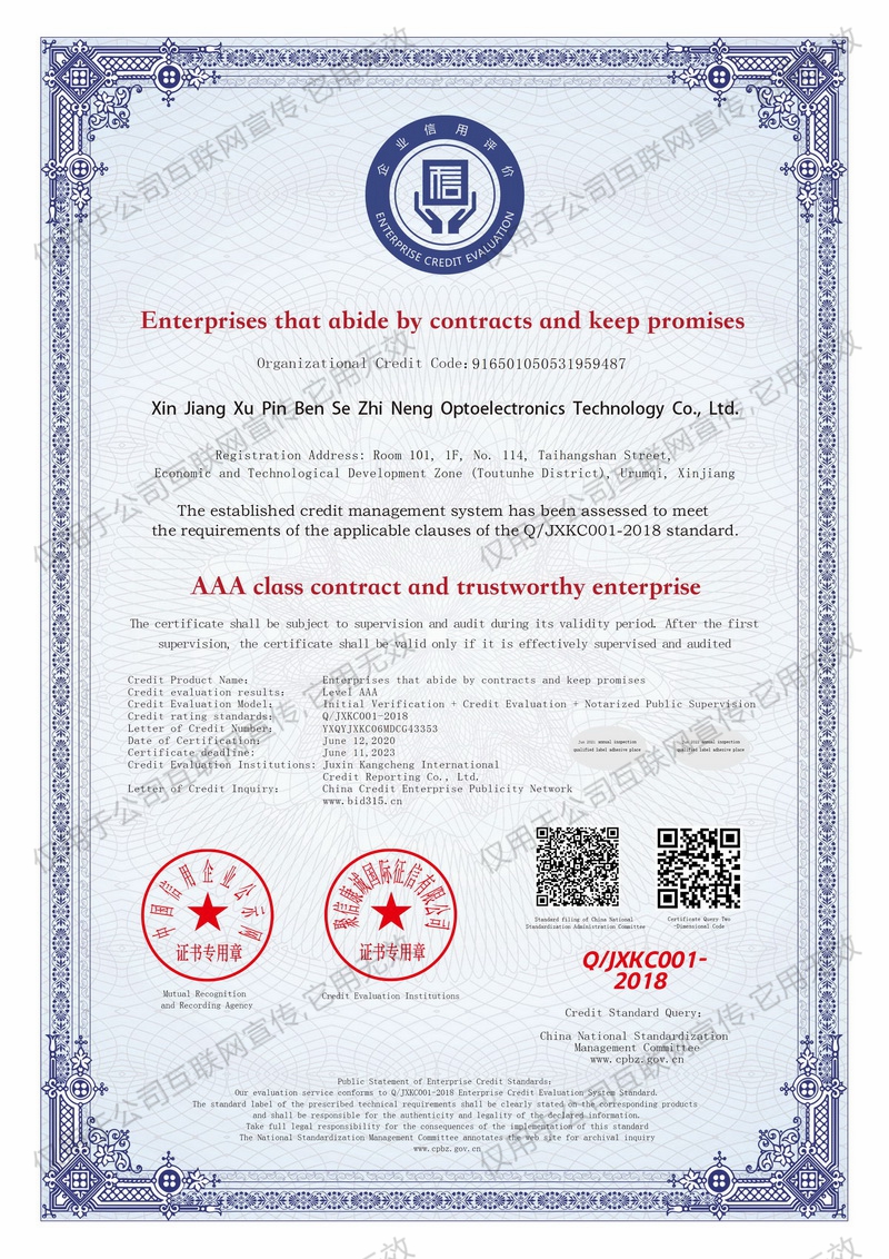 資質(zhì)名稱:AAA級重合同守信用企業(yè)_英文版