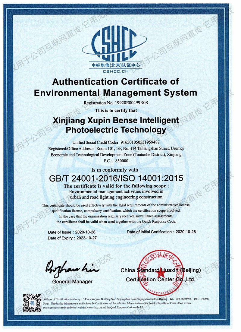 資質(zhì)名稱:環(huán)境管理體系認證證書ENG