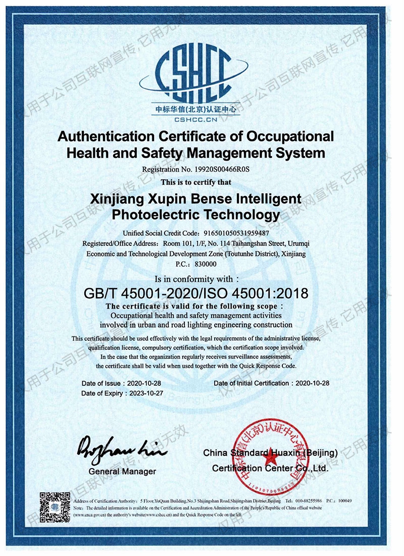 資質(zhì)名稱:職業(yè)健康管理體系認證證書ENG